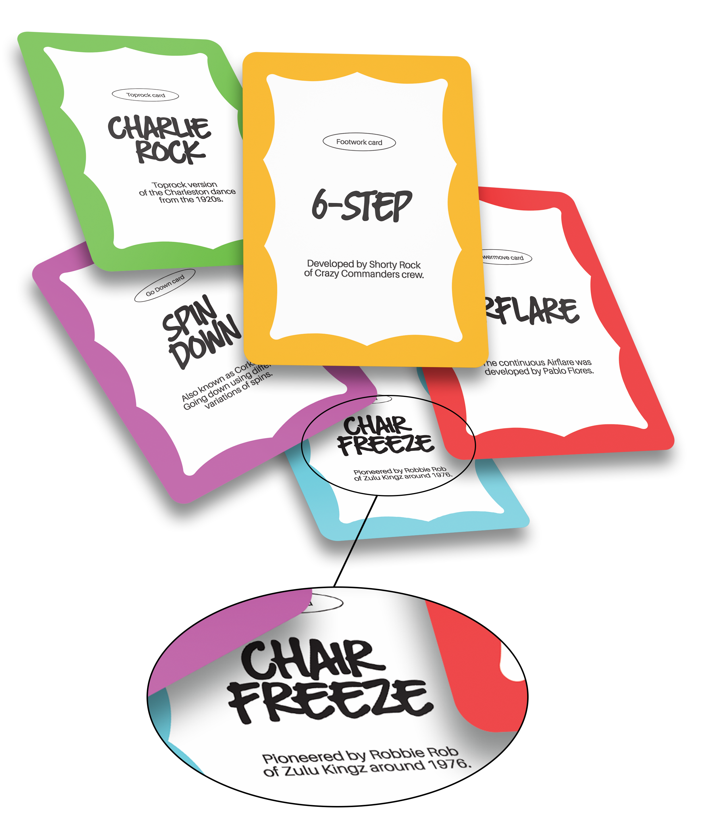 Each card also contains fun facts about the moves, offering insights into their history, variations, and role within breaking culture.