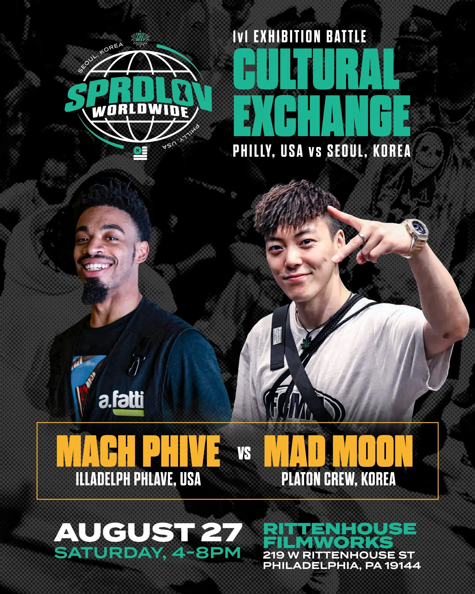 On August 2022, we organized a 2 vs 2 battle in Philadelphia with a side event, an exhibition battle between Mach Phive (Philadelphia, USA) and Madmoon (Seoul, Korea), PHILLY SEOUL CONNECTION.